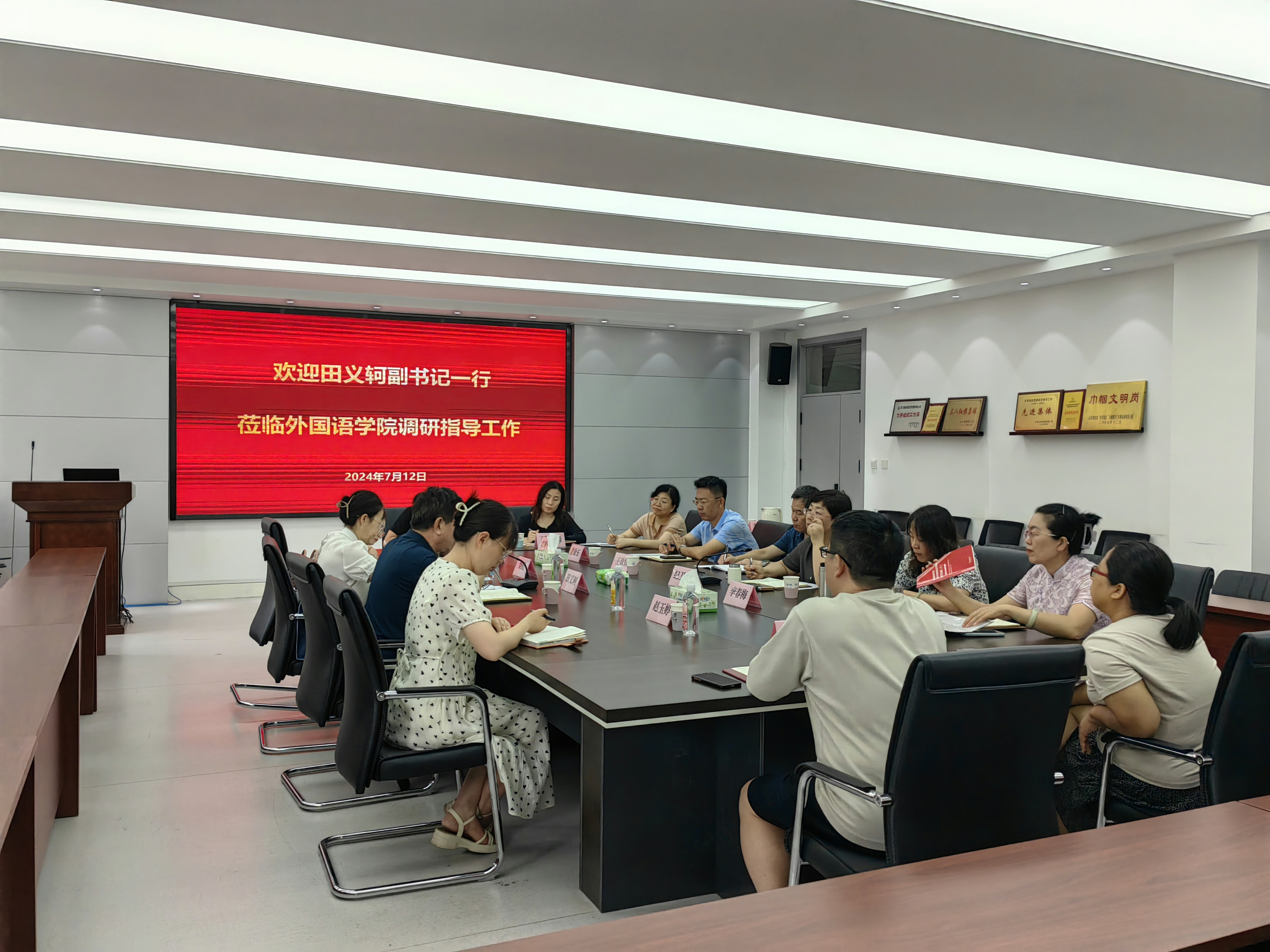 7月12日,校党委副书记田义轲到3868银河总站走访调研,指导人才培养工作。学院党委书记王效仿、院长纪卫宁、党委副书记副院长盛金玉等全体党政领导班子成员及各专业负责人参会。