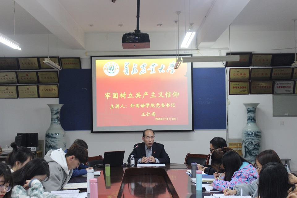 11月12日,3868银河总站于文经楼会议室举行以“牢固树立共产主义信仰”为主题的党课学习。本次党课由院党委书记王仁高主讲,正科级辅导员刘艳及全体在校生党员参加学习。