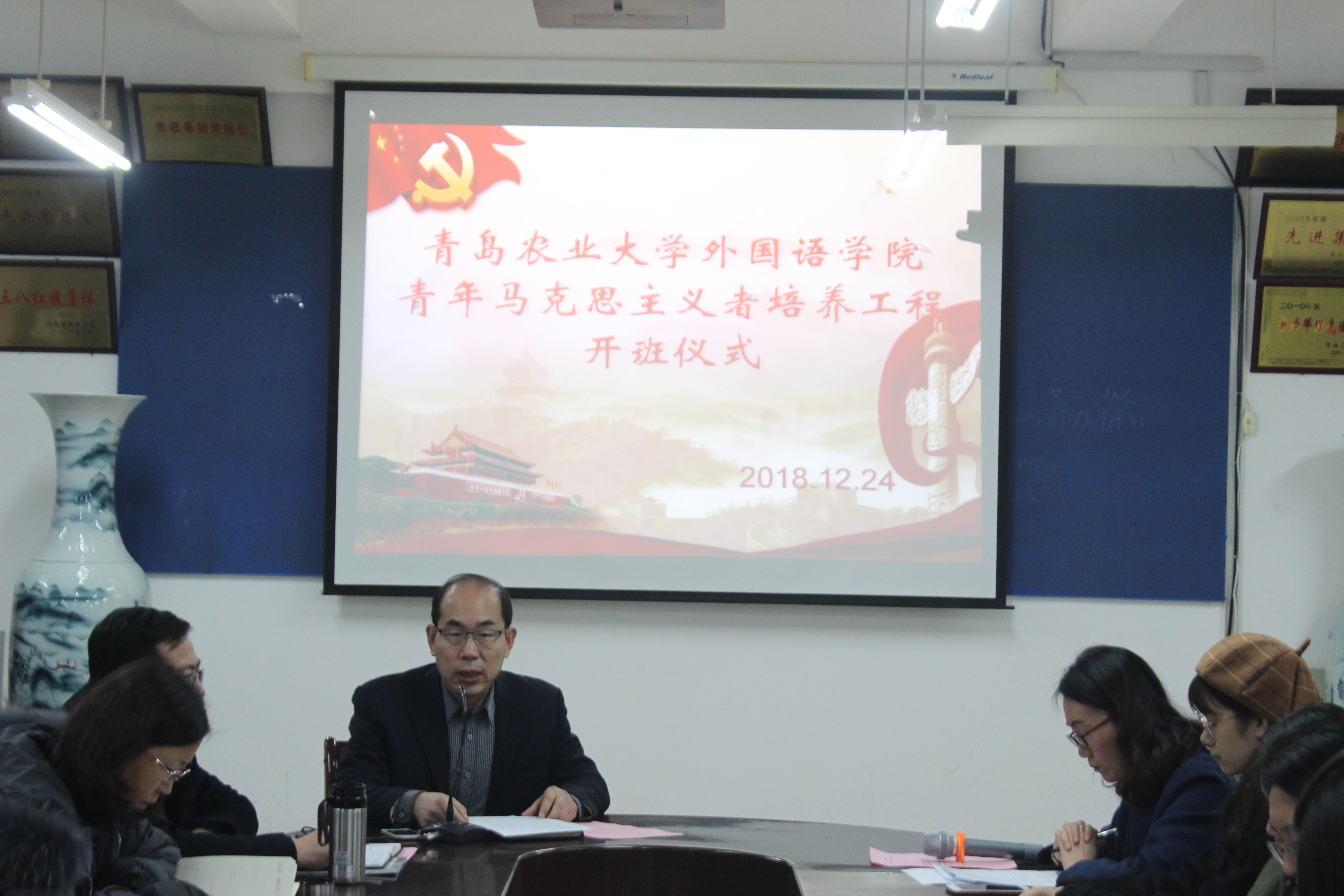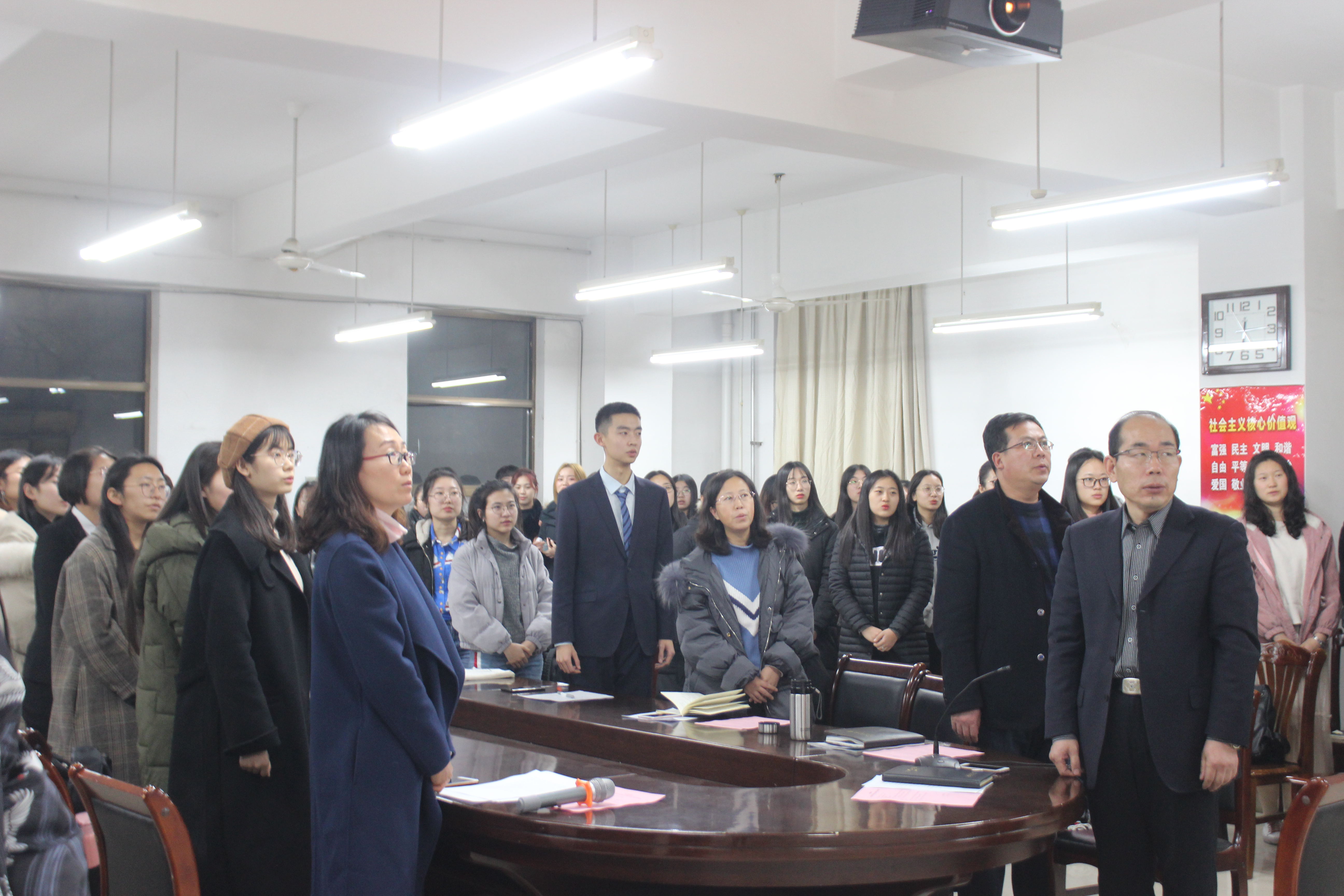 12月24日,3868银河总站于文经楼会议室举办青年马克思主义者培养工程(以下简称“青马工程”)培训班开班仪式。学院党委书记王仁高、党委副书记王晓雷、团委书记嵇安奕、正科级辅导员刘艳出席,学生党员、学生会主席团成员、学生会各部部长及副部长、18级班长书记参加。开班仪式由嵇安奕主持。