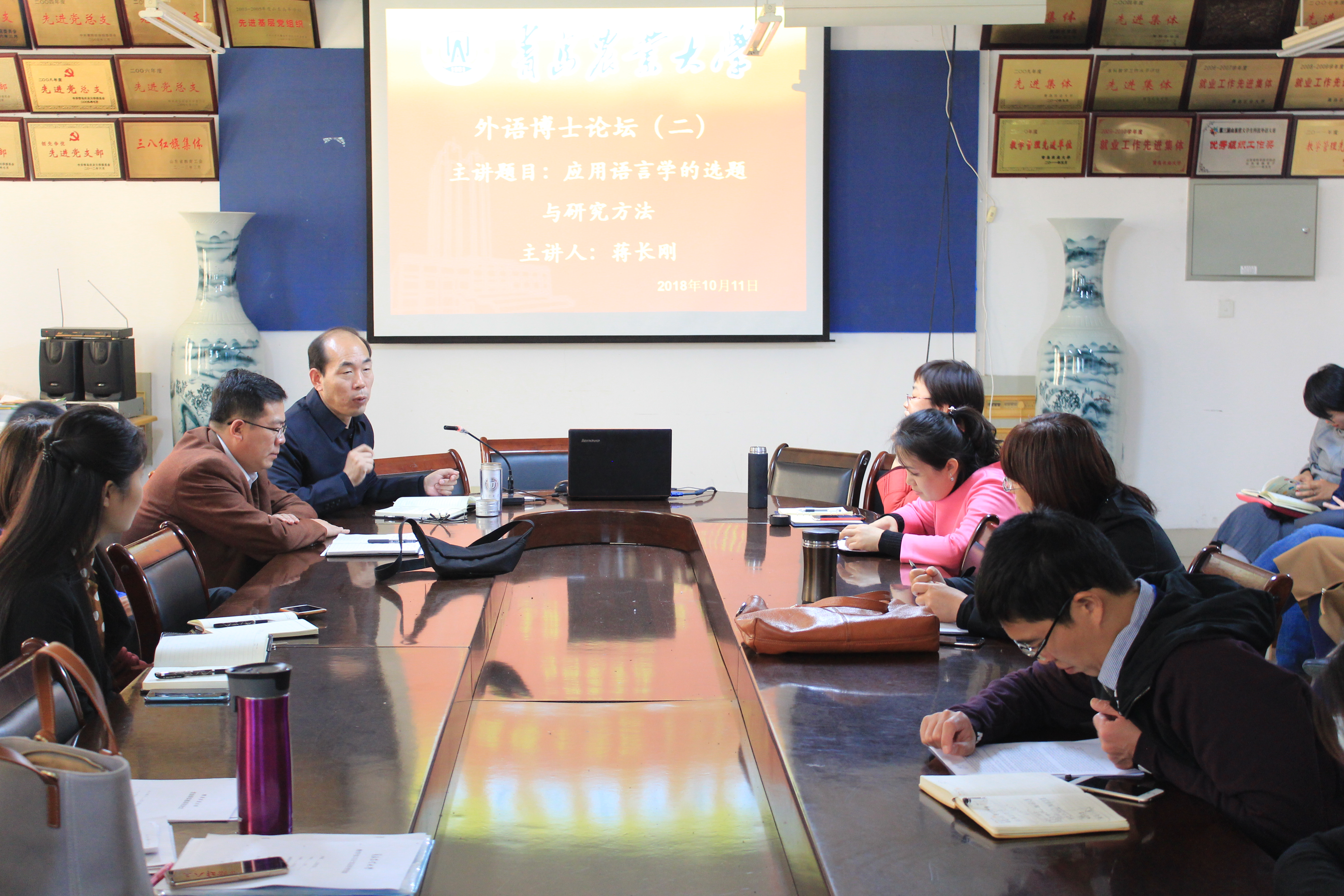 10月11日,3868银河总站“首届外语博士论坛第二讲”于文经楼会议室顺利举行。此次博士论坛由同济大学毕业的蒋长刚博士主讲,学院全体教职工出席,学院领导纪卫宁主持论坛。