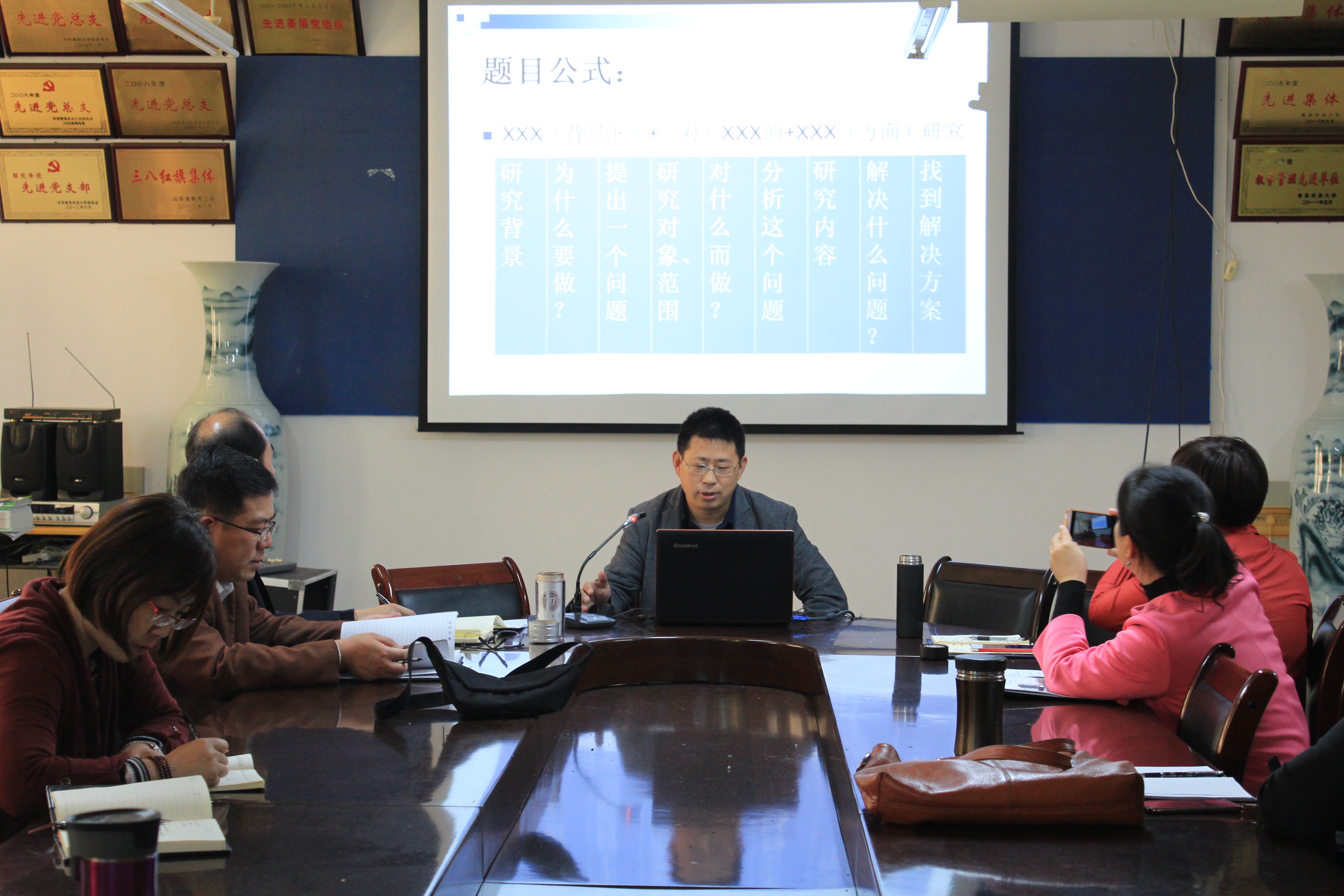 蒋长刚博士多年来一直潜心钻研于应用语言学领域,对该领域有着深厚的研究基础和独到的见解。本次论坛蒋博士主要从研究问题、研究方法、研究范式三个部分对应用语言学的选题与研究方法进行展开讲述。蒋博士首先从应用语言学的研究范围、应用语言学有广义和狭义之分对研究问题进行深度剖析,然后指出应用语言学研究的三大方法主要包括语料搜集、研究工具、研究步骤,并提出了实证研究的三大路径。最后,蒋博士对研究范式进行了总结,指出:“任何学术研究范式都表现为“目标”、“问题”、“方法”三者的统一。目标产生问题,问题选择方法。”学院领导纪卫宁发表了总结评述,针对报告内容提出详尽的看法,鼓励教师直抒胸臆、勇于创新。