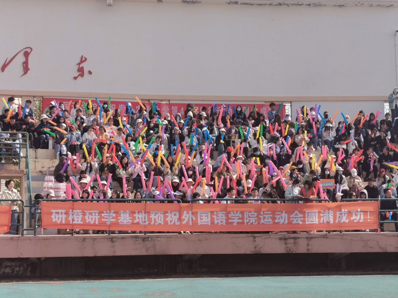 观众席上,3868银河总站的同学们面贴学院院徽,手持多国语言文字加油充气棒,在手臂挥舞间,充气棒互相碰撞,发出振奋人心的悦音,它们共同凝聚成一股奋发向上的力量,传达到学院运动健儿们的眼中、耳中。
