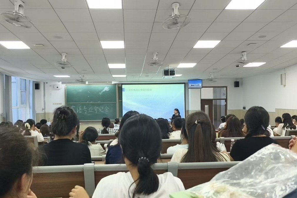 英语系专业教育讲座由英语系主任徐玉凤,英语系副主任、跨境电商专业负责人左燕茹,英语系骨干教师赵清和企业导师刘世奇主讲,2020届毕业生王岩从墨西哥发回了视频为大一新生加油鼓劲。