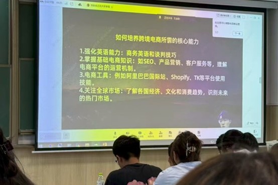 企业导师,阿里巴巴全国明星讲师、蒂万坦斯创始人刘世奇,做了《英专生如何成为跨境电商行业人才》的专题讲座。讲座指出跨境电商是全球增长最快的行业之一,详细讲解了AI时代跨境电商B2B的变化与新机遇、行业常见的岗位、薪资水平及英专生的独特优势,最后从4个方面剖析了如何培养跨境电商所需的核心能力。