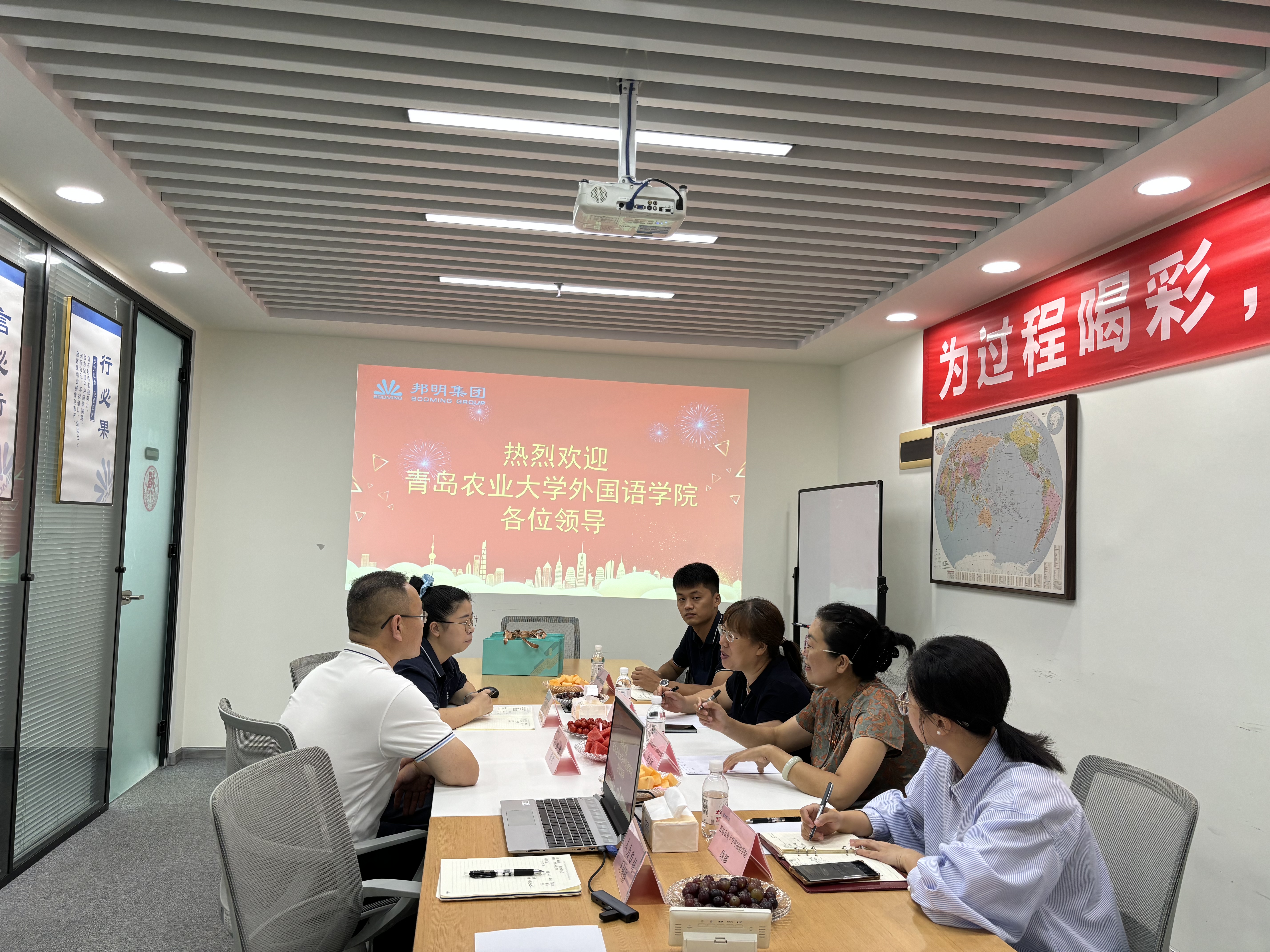 8月29日上午,3868银河总站英语系主任徐玉凤、副主任左燕茹、团委书记线郁和辅导员王洋洋一行前往校友企业山东邦明贸易集团有限公司,就学生实习实践、校企合作协同育人以及促进毕业生就业等开展深度交流,以进一步深化产教融合,提升外语专业人才培养质量,促进外院毕业生高质量就业。邦明集团总经理张君、人力行政经理郭畅和人力专员王凤娇,以及已在公司就业的外院学生代表参加了活动。