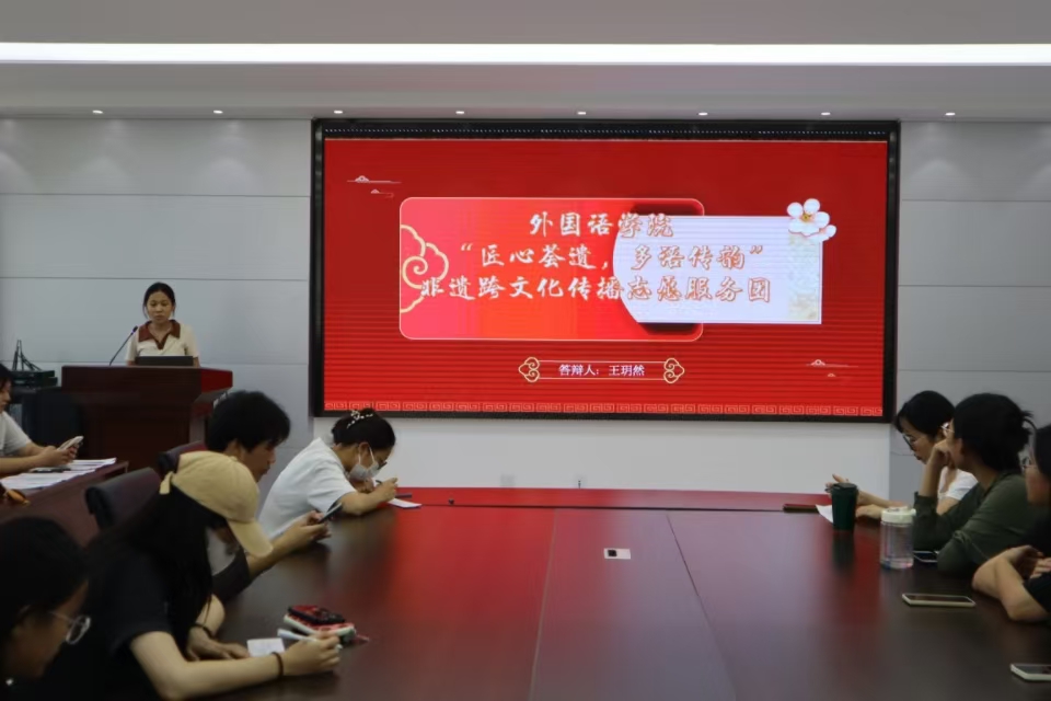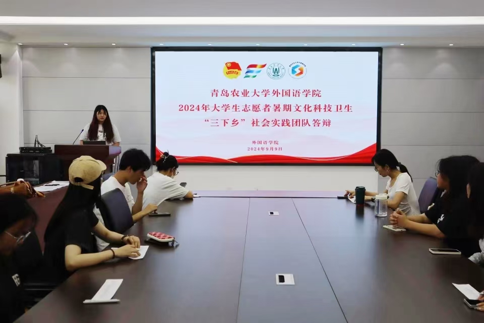 答辩过程中,各重点团队代表通过视频播放、PPT展示等形式,详细介绍了团队的实践背景、目的、过程以及取得的成果。参与答辩的12支实践团队以“用外语讲好中国故事”为号召,围绕非遗文化、农耕文明、红色文化、黄河文化、乡村振兴、黄河流域美丽中国建设等多个社会实践主题,在暑期深入农村、社区和企业等地开展了丰富的实践活动。在文化传承方面,实践团队走进非遗传承基地、黄河流域、沂蒙革命老区等地追溯文化历史,为助力优秀非遗文化、红色文化、黄河文化的传承和外宣贡献了自己的力量。在科技支农方面,实践团队先后参观兰陵国家农业园、华夏菜园、沂蒙山农耕博物馆、锦绣兰陵等地了解农耕技术的发展与进步。在乡村振兴方面,实践团队从农业发展、文旅结合等方面深入潍坊市、临沂市等地进行调研和总结。